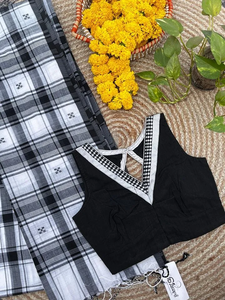 A beautifully woven handloom cotton saree from the traditional looms of Tangail, featuring delicate threadwork.