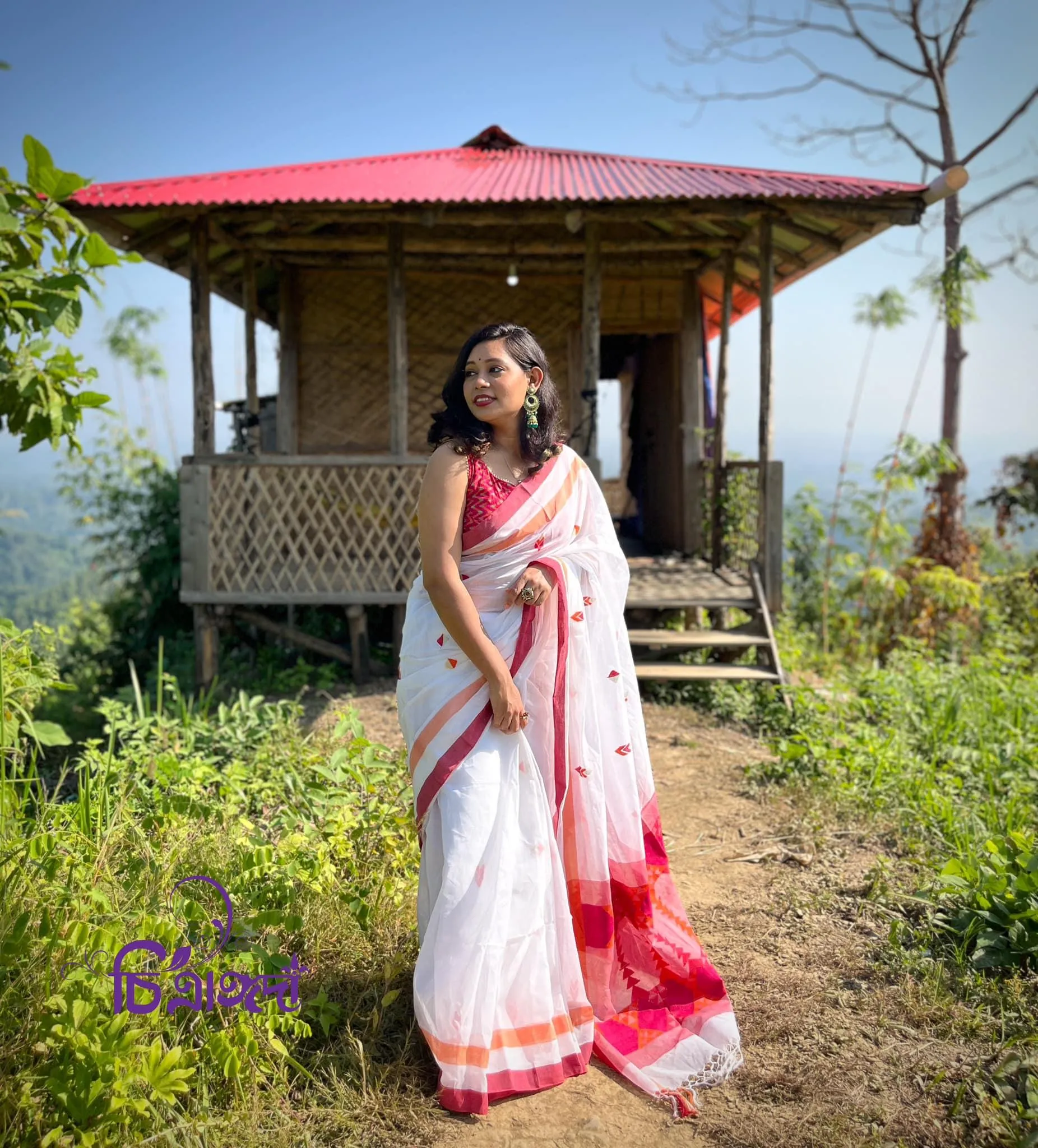 A graceful pick for Falgun or Valentine's Day — the Binita saree is simplicity at its finest.