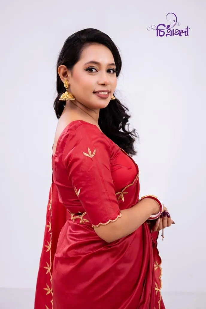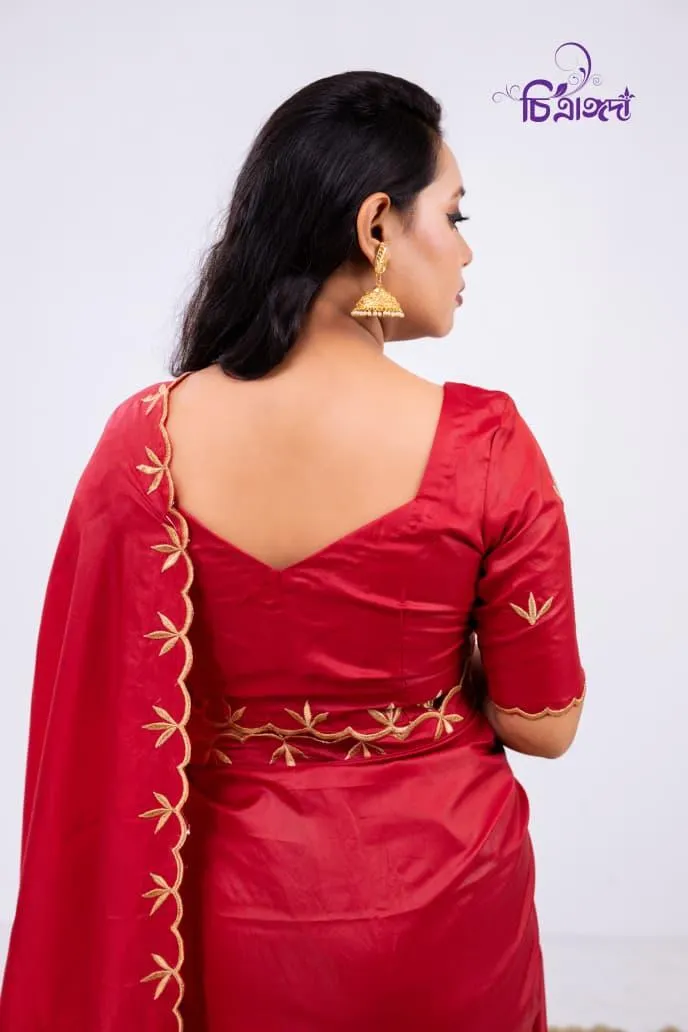 Crafted from premium Paper Silk, designed with our own designed exquisite embroidery and tailored details for a sophisticated saree look.
