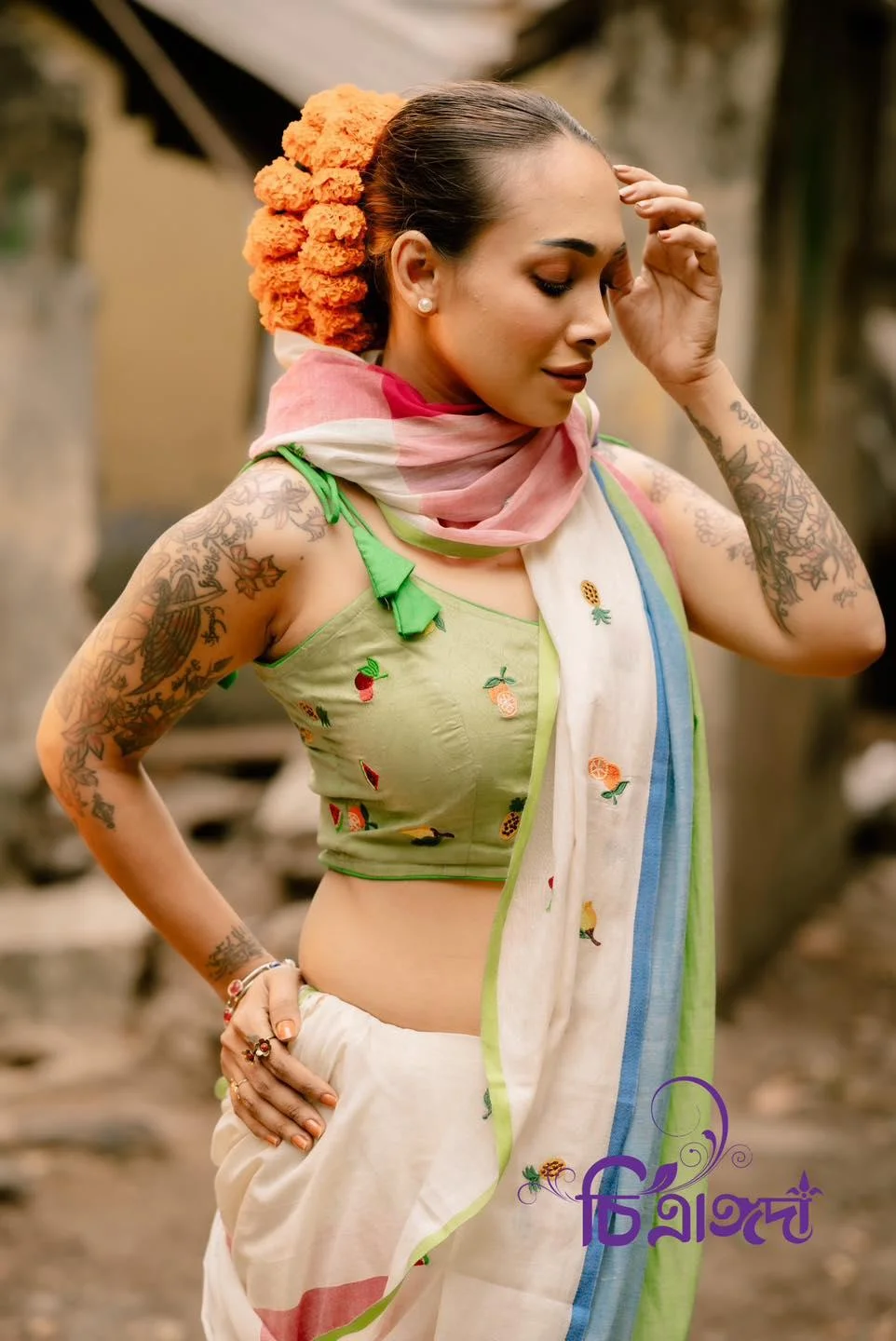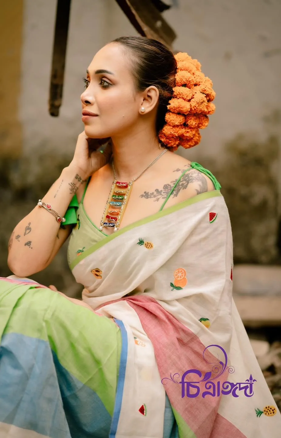 🍉🥭 ‘Foler Bagan’ – A Chitrangoda Exclusive Embroidered Saree 🥭🍉