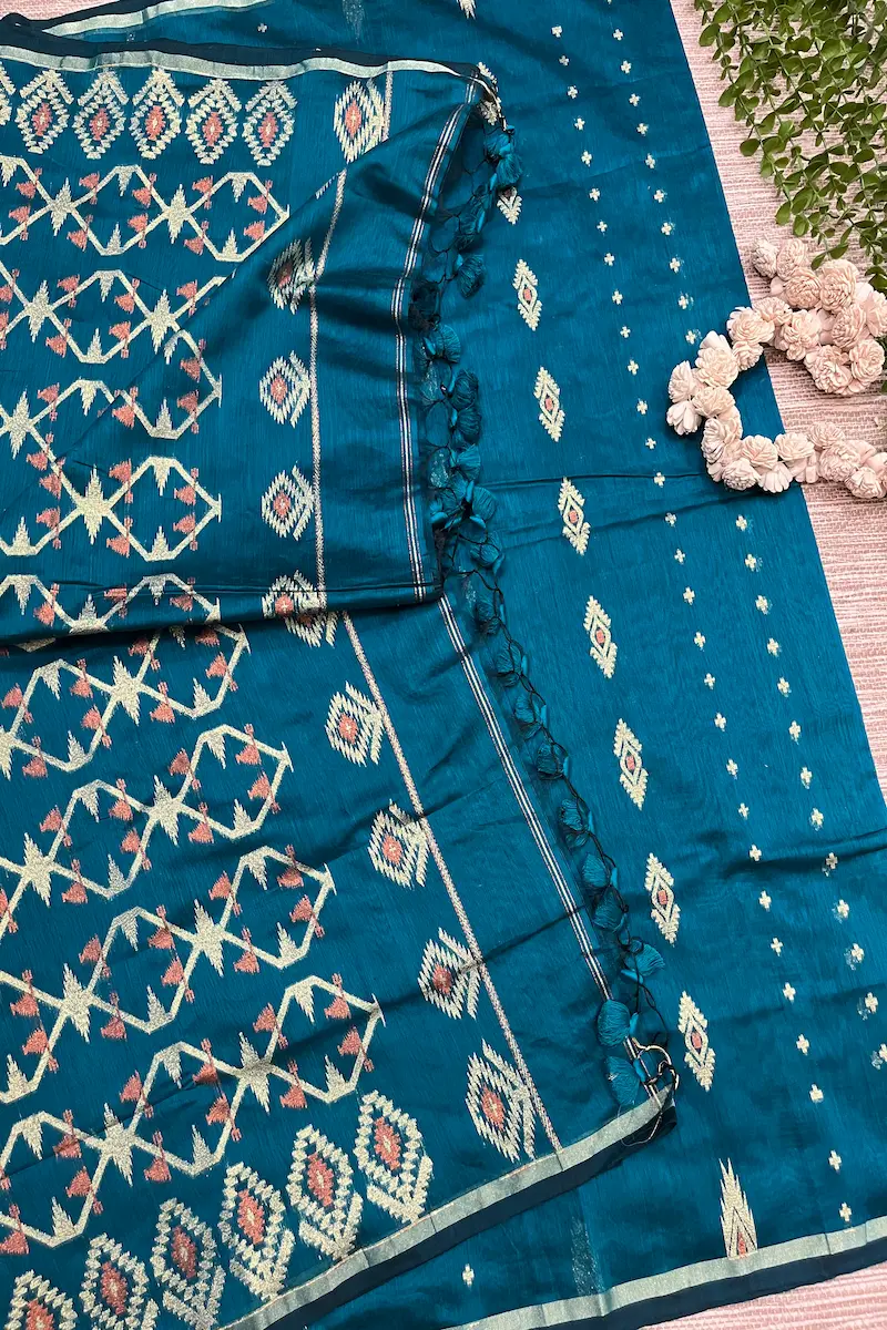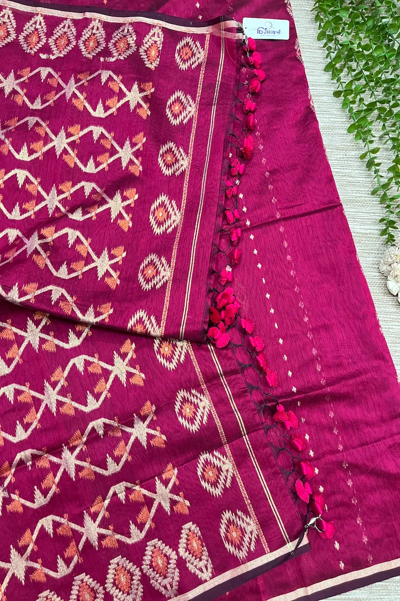 Bold, festive, and radiant — New Ice cream is crafted in lightweight Tangail Soft Silk, featuring whole body jori thread work that glows beautifully in wedding and formal lights.