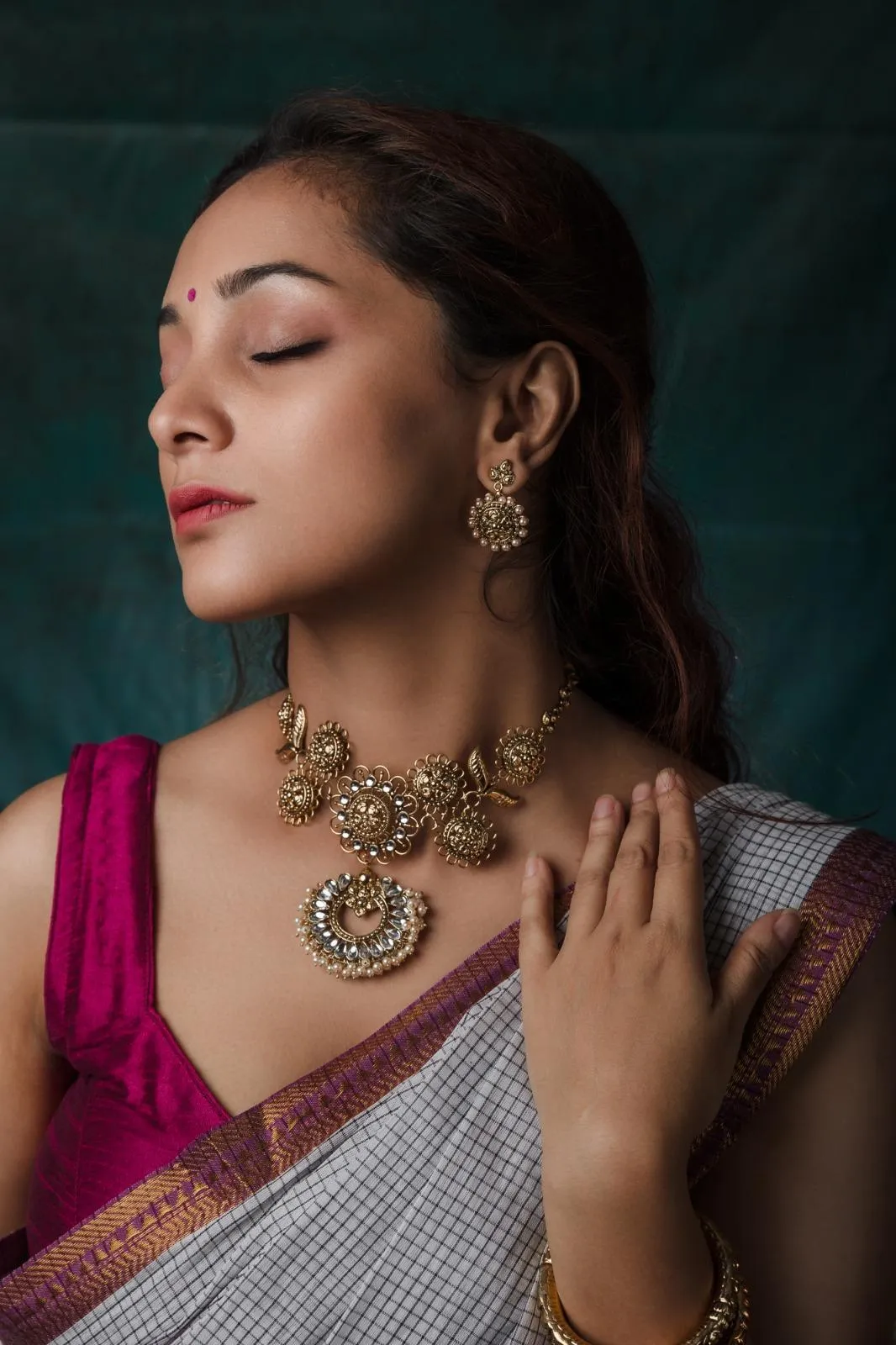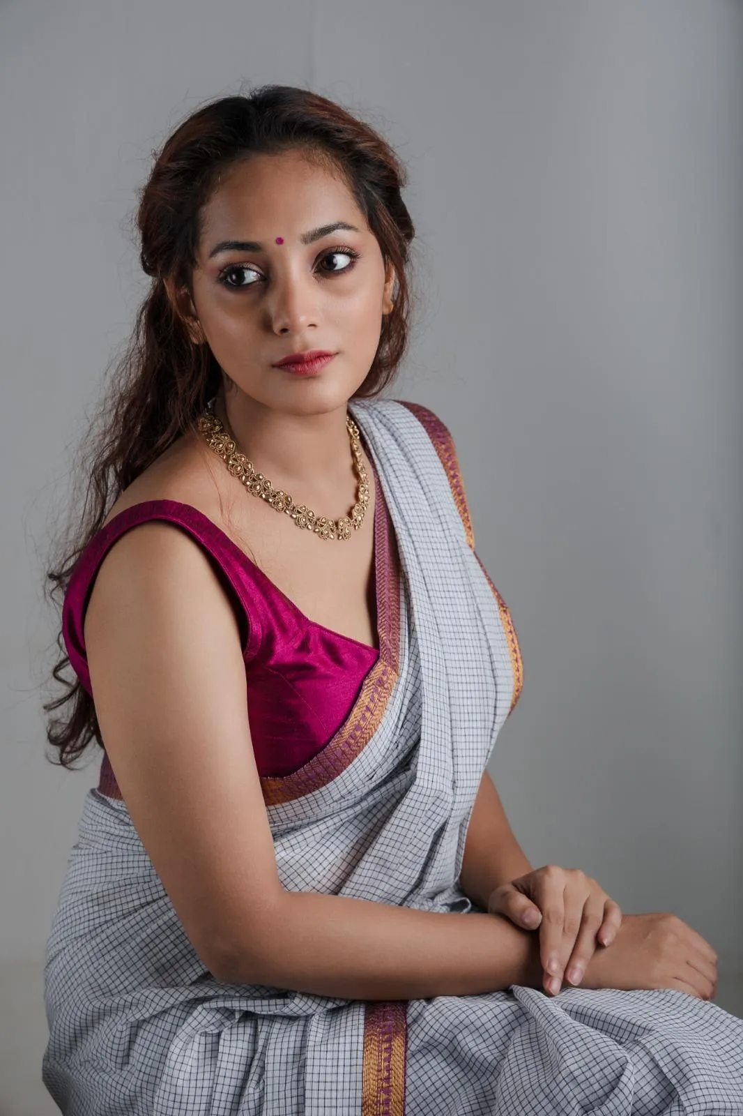 When it comes to style, the Ivy blouse shines with a beautiful jam color. It’s padded and comes with an attached inner lining for extra comfort. Made from soft Dhupian silk fabric.