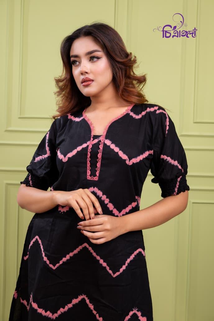 Add playful charm and effortless style with this kurti, crafted from our very own designed tie-dye batik.