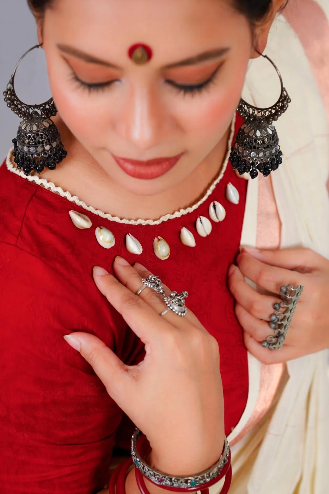 Carefully handcrafted with love, the highlight of the ‘Maya’ blouse is its beautiful kaṛi (bead) detailing.