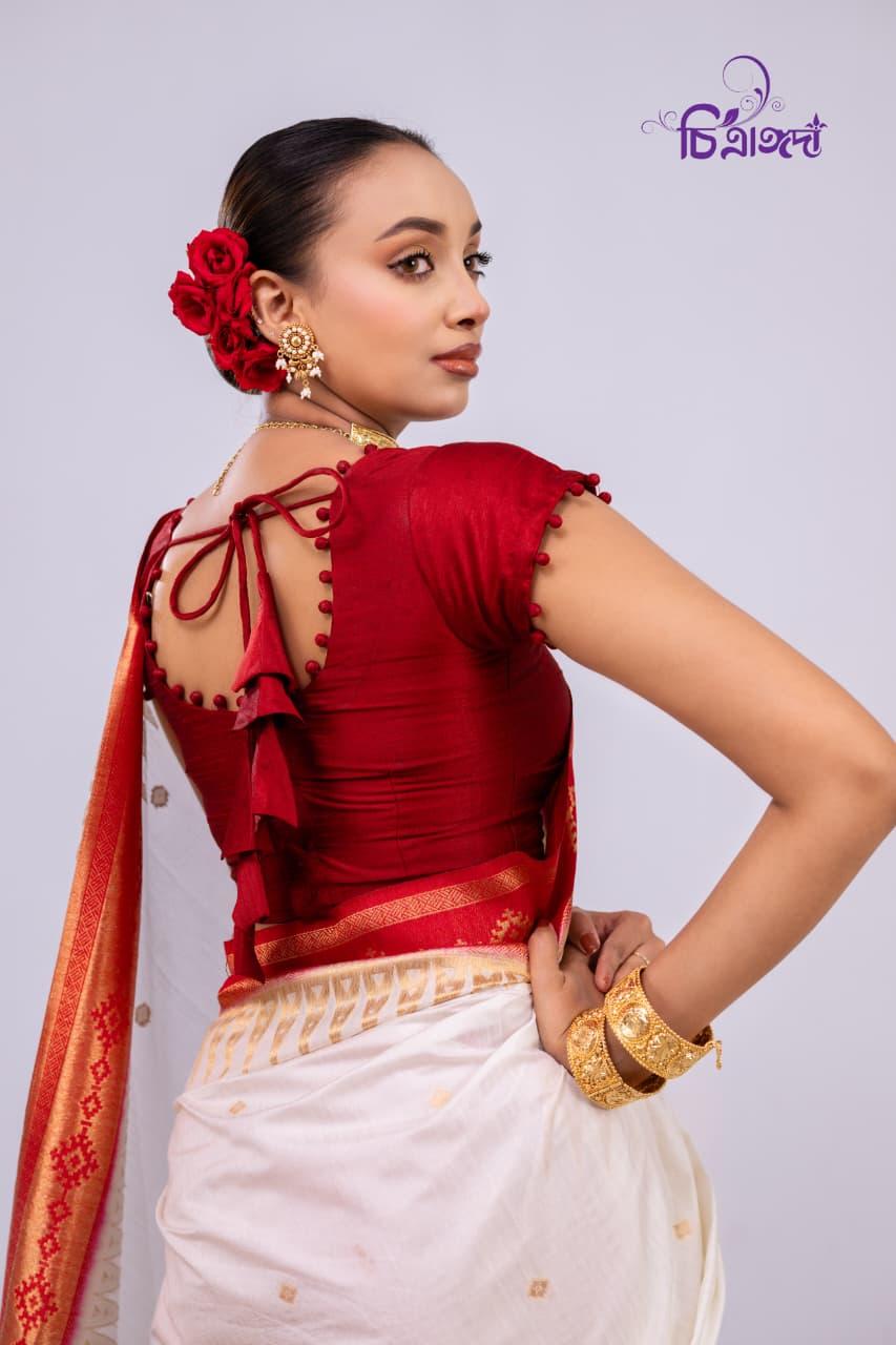 Crafted from premium Dhupian Silk, designed to bring elegance and sophistication to your saree look.