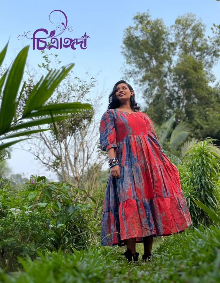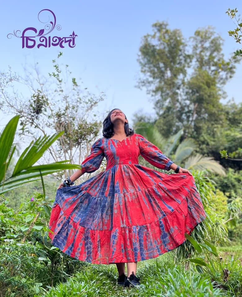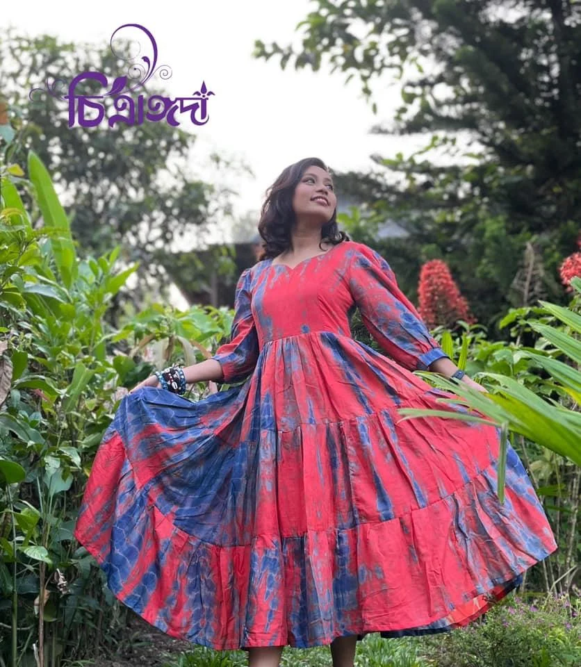 ✨ Long gown in a beautiful red-blue mixed color.