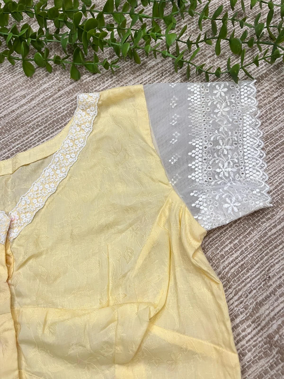 This blouse is designed to blend grace with modern charm and highlights fine lace craftsmanship and a timeless silhouette.