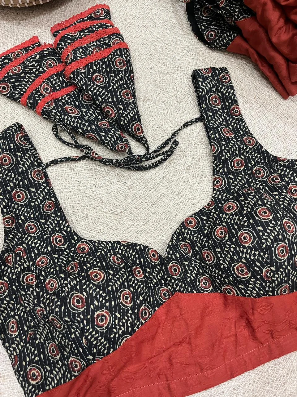 This blouse blends traditional charm with contemporary style, featuring fine fabric craftsmanship and a flattering silhouette.
