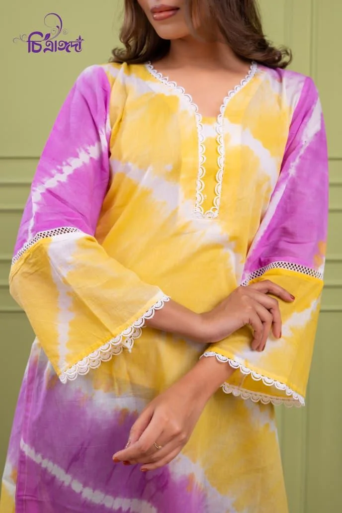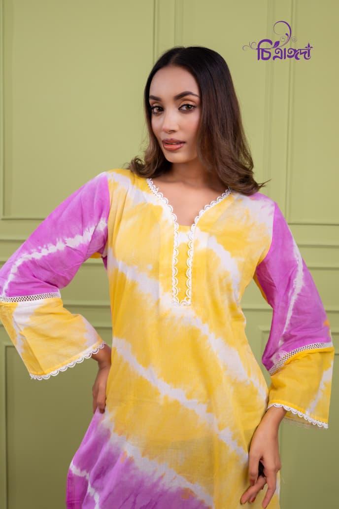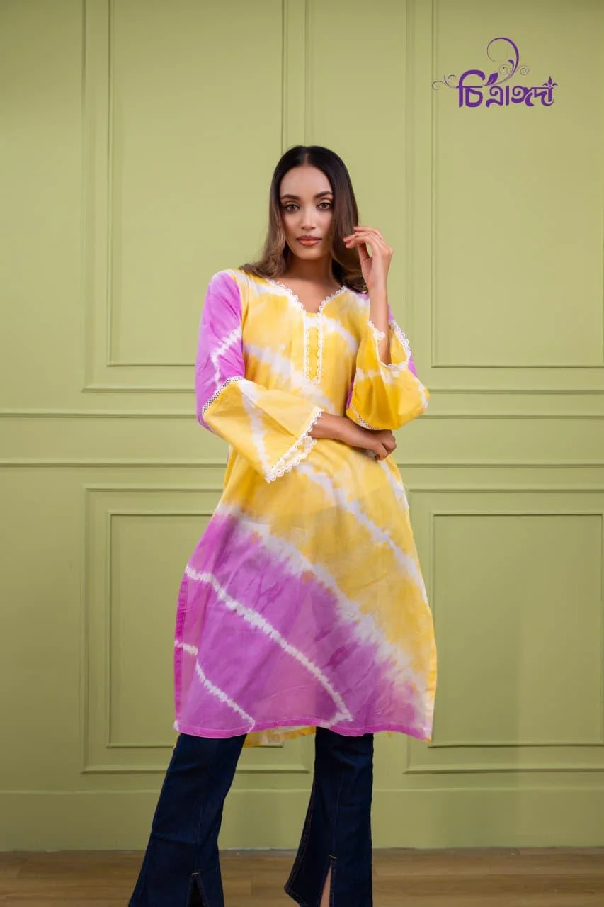 Brighten your day with this handcrafted tie-dye batik kurti, designed in-house to combine playful colors with effortless comfort and style.