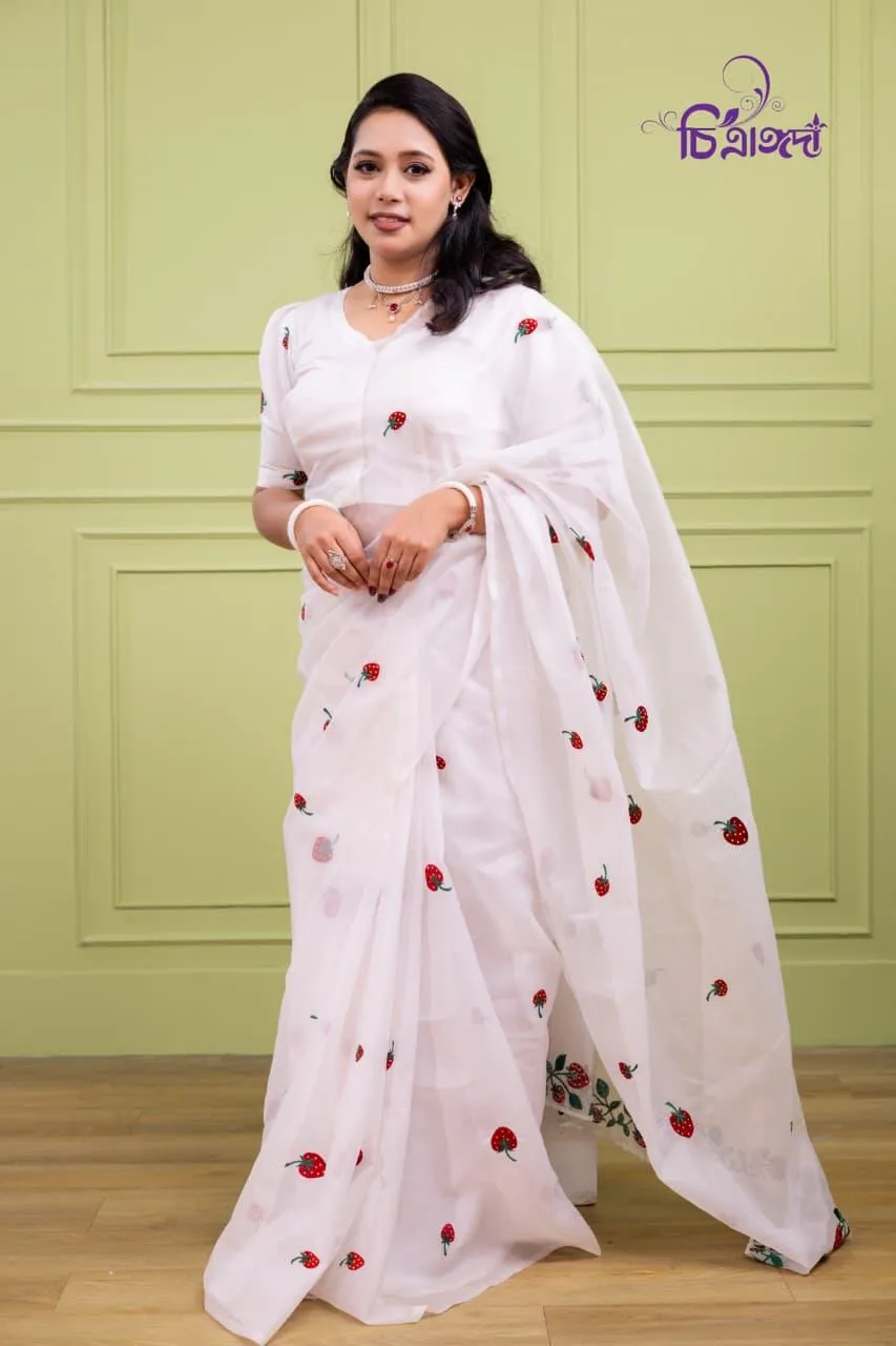 In our exclusively designed Strawberry Sarees, those stories come alive through vibrant colors and delicate craftsmanship.