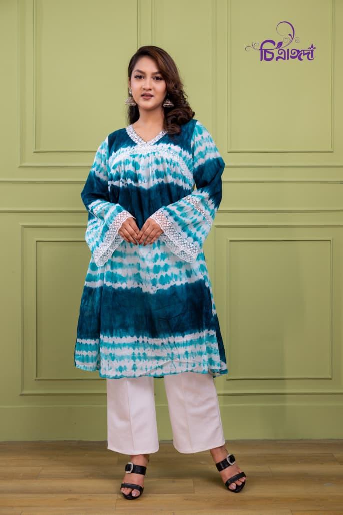 Step into effortless style with this kurti, crafted from our very own designed tie-dye batik for a graceful and unique look.