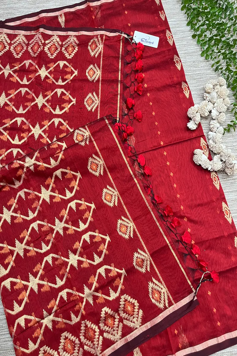Bold, festive, and radiant — New Ice cream is crafted in lightweight Tangail Soft Silk, featuring whole body jori thread work that glows beautifully in wedding and formal lights.