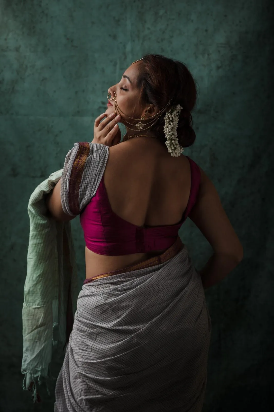 When it comes to style, the Ivy blouse shines with a beautiful jam color. It’s padded and comes with an attached inner lining for extra comfort. Made from soft Dhupian silk fabric.