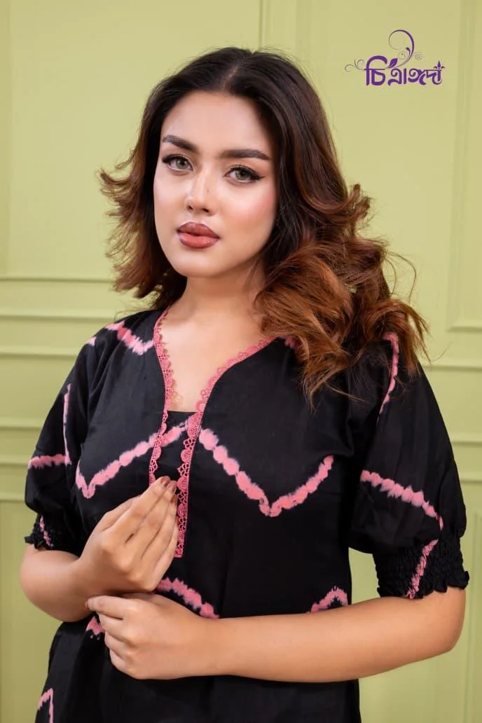 Add playful charm and effortless style with this kurti, crafted from our very own designed tie-dye batik.