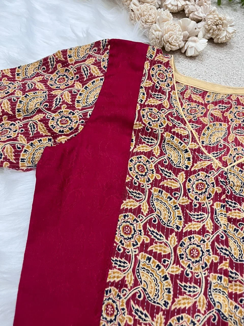 • 🧵 Fabric: Crafted from a blend of Kantha Stitch Jaipuri Cotton and Jacquard Cotton.